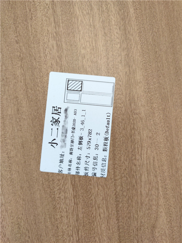 我家不管大小板都是四面封邊哦!每塊板上都貼有小標簽,方便后期安裝師傅安裝。