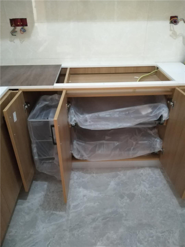 后期臺面安裝需用到。柜子安裝好后進入臺面測量環節,臺面量完后一個星期內送貨并安裝。