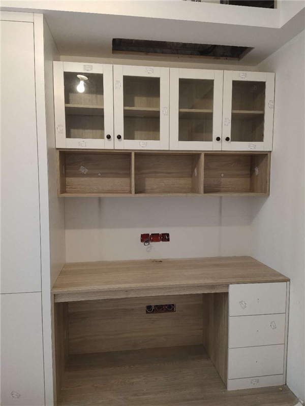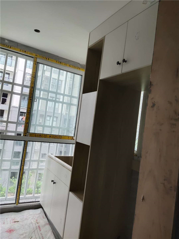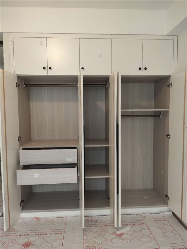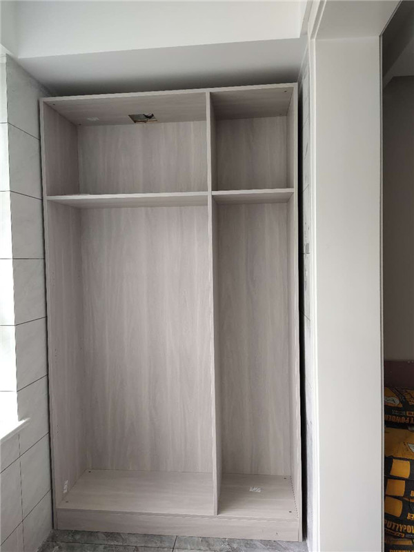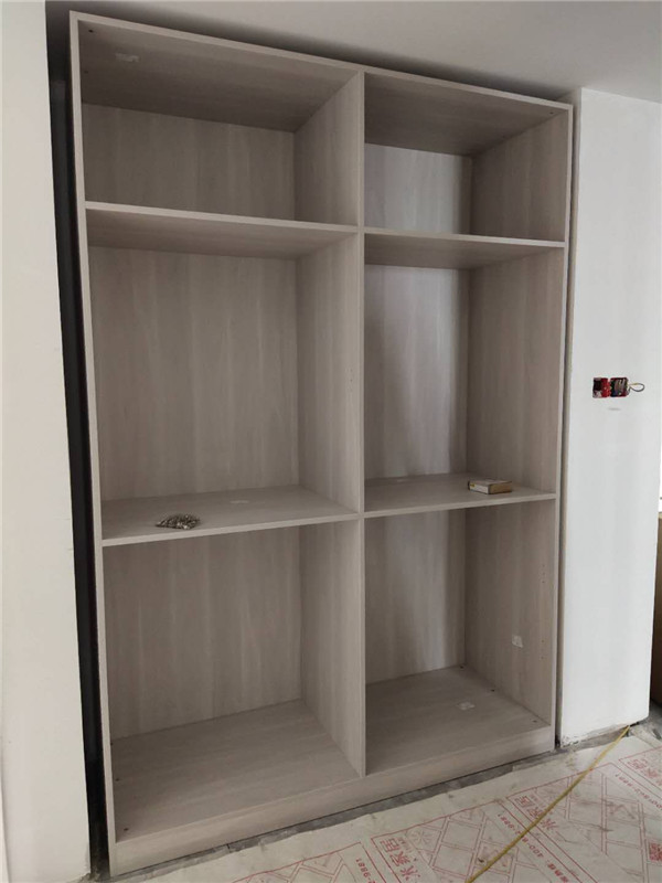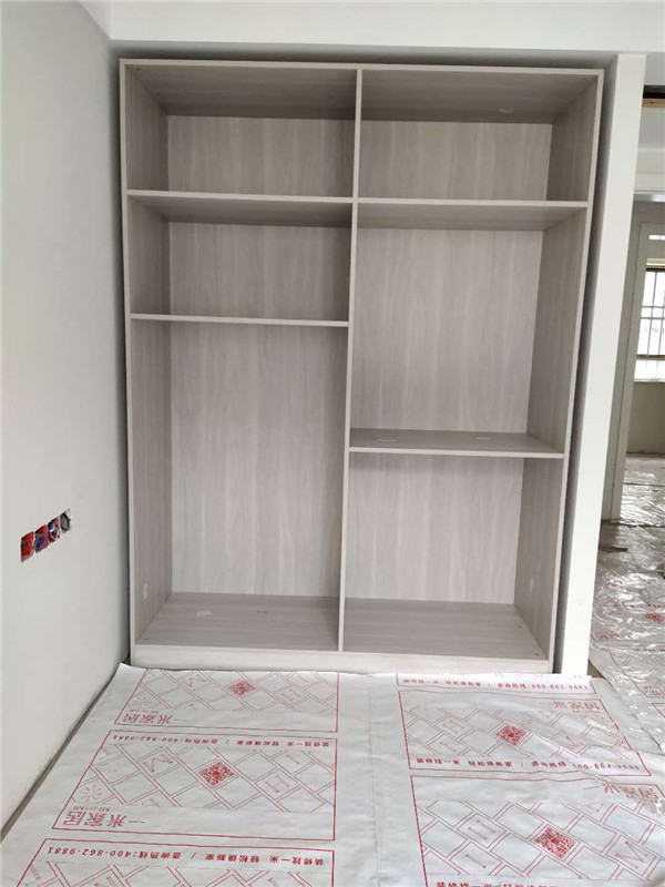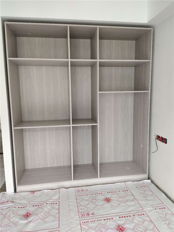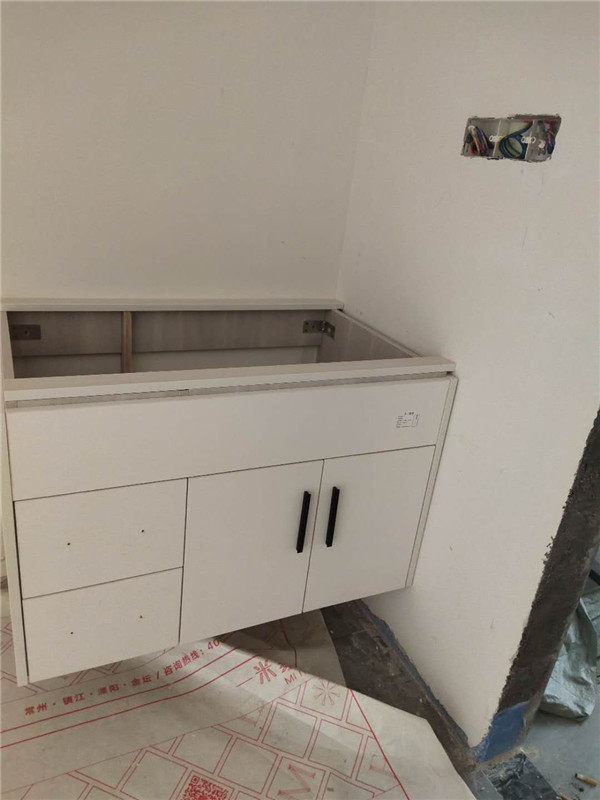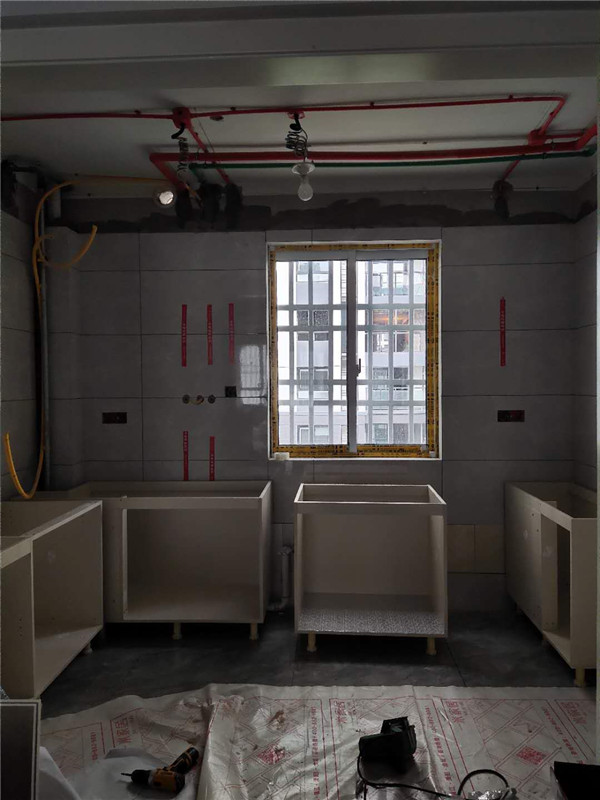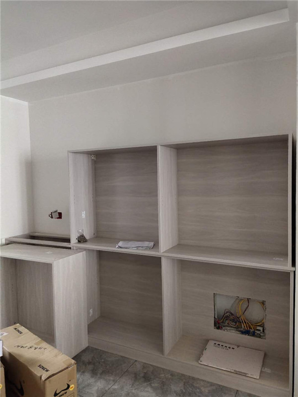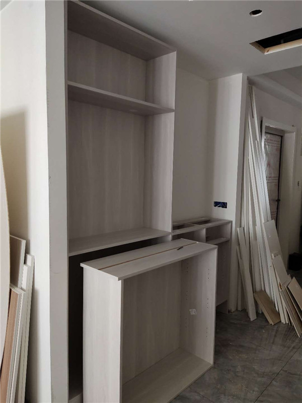 安裝兩天的效果,柜體基本拼裝完畢了,業主家柜體以淺色系為主,整體效果清爽干凈。