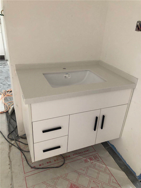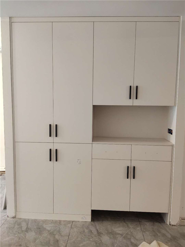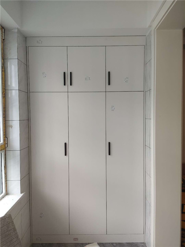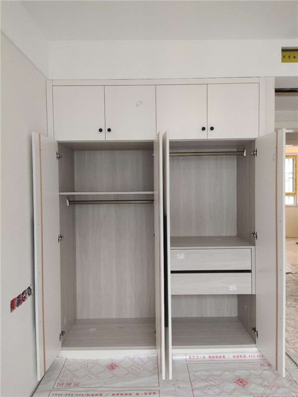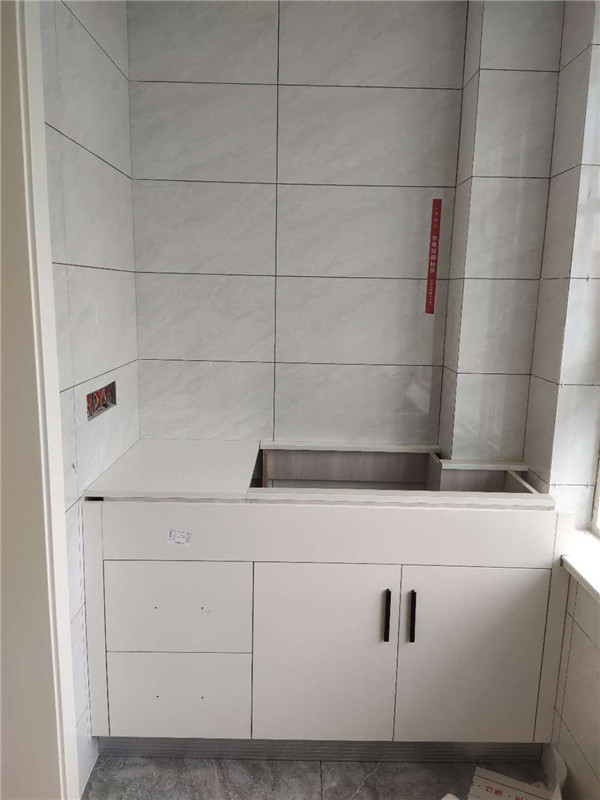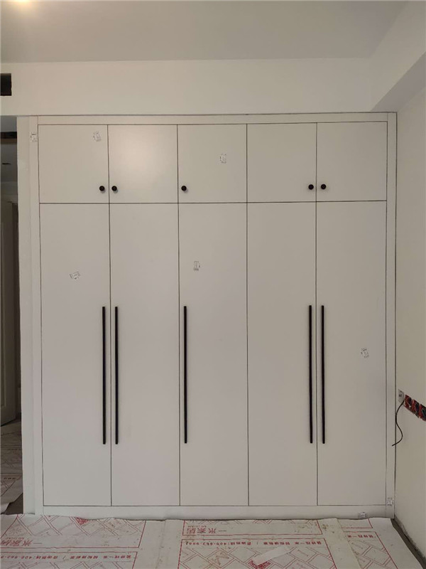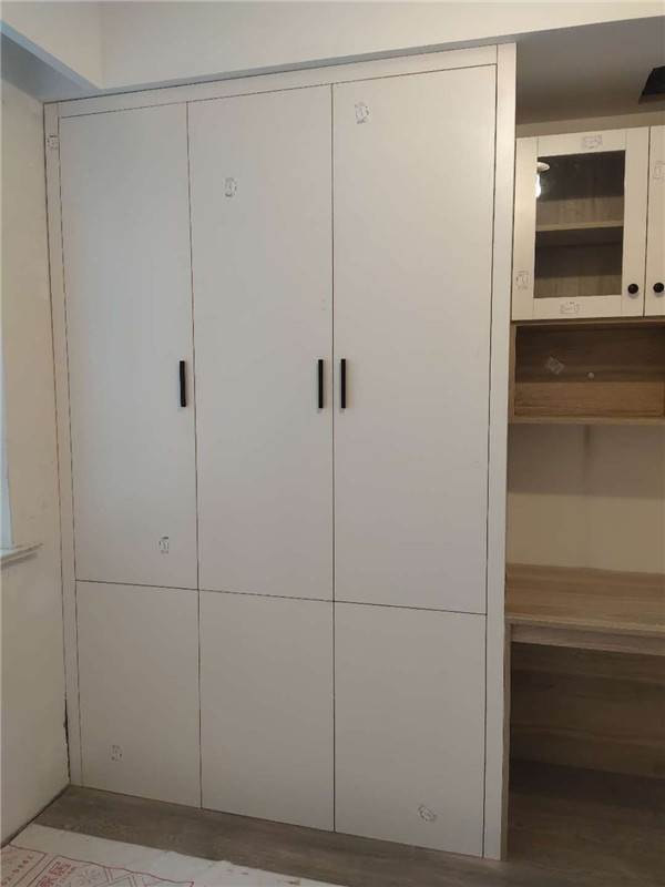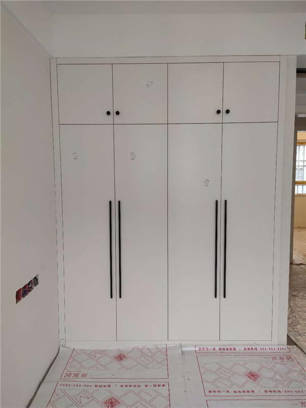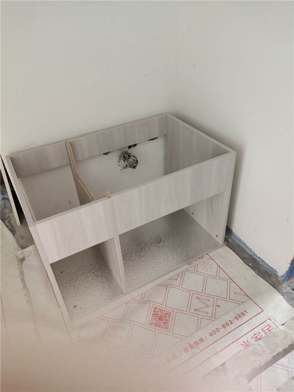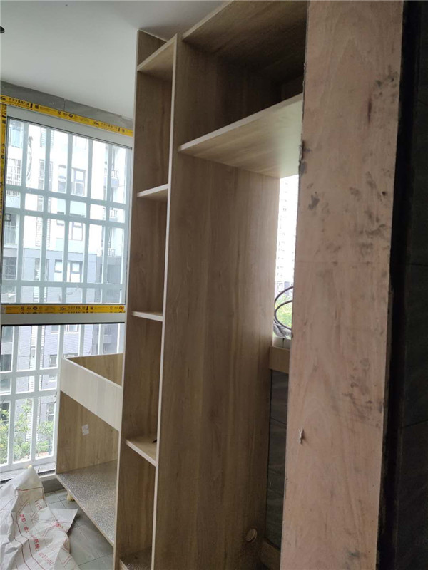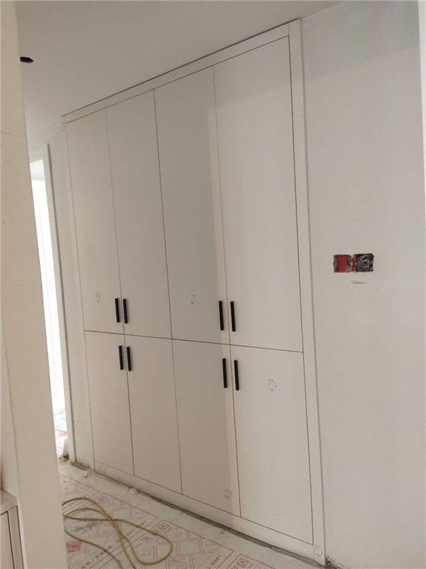 安裝兩天的效果,柜體基本拼裝完畢了,業主家柜體以淺色系為主,整體效果清爽干凈。