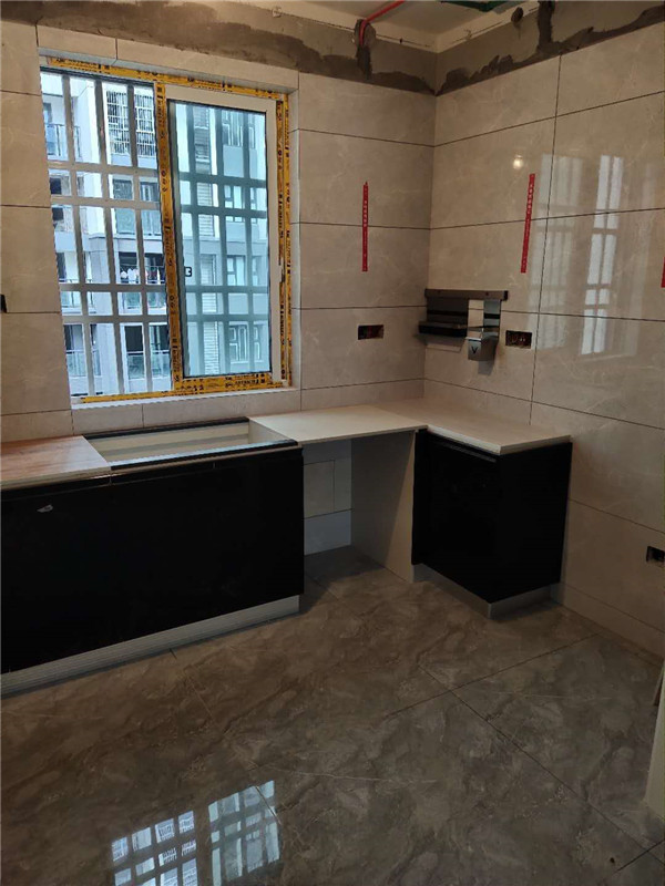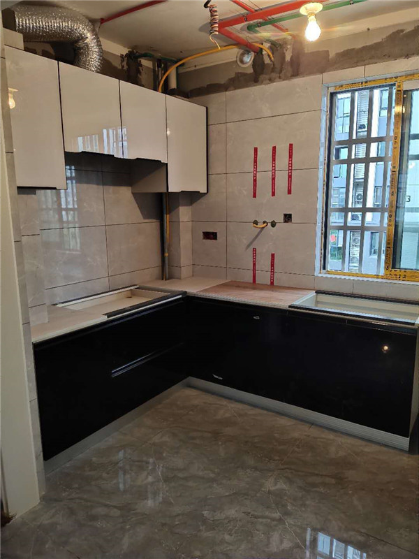 柜子都安裝好了,業主家以白色為主,配黑色拉手簡單,清爽。期待后期的整體效果。