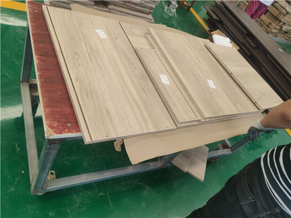 防止使用時間常出現(xiàn)柜體發(fā)霉的現(xiàn)象。拆好的板師傅都整整齊齊放在墊板上,沒有高矮不齊的現(xiàn)象,