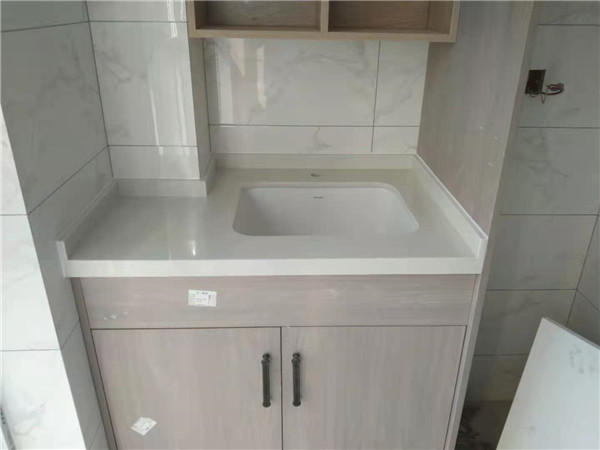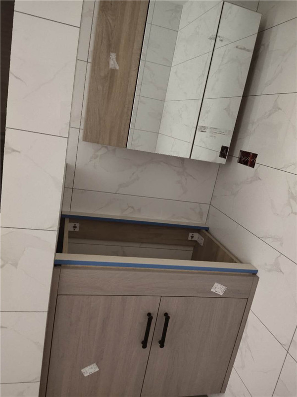 浴柜臺盆放置在現(xiàn)場,后期臺面安裝需用到。柜子安裝好后進入臺面測量環(huán)節(jié),臺面量完后一個星期內(nèi)送貨并安裝。