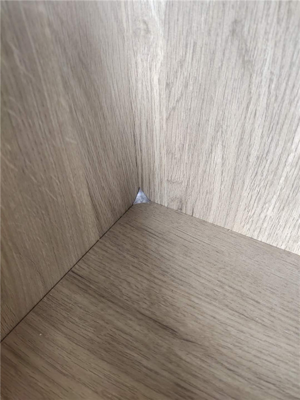沒有爆邊的情況,這樣后面封出來的邊更圓滑,全自動機器開料尺寸更精準(zhǔn)。插槽背板離墻面1.7公分,