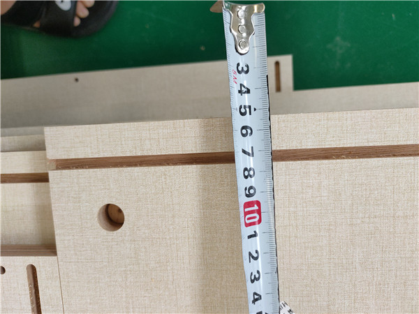 開始制作啦!專業(yè)設(shè)備裁板,板材使用平安樹實木多層板E0級制作,有高級的藍(lán)光防偽標(biāo)識哦,