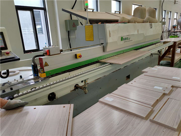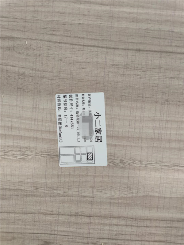 好開始封邊了。我家不管大小板都是四面封邊哦!每塊板上都貼有小標簽,方便后期安裝