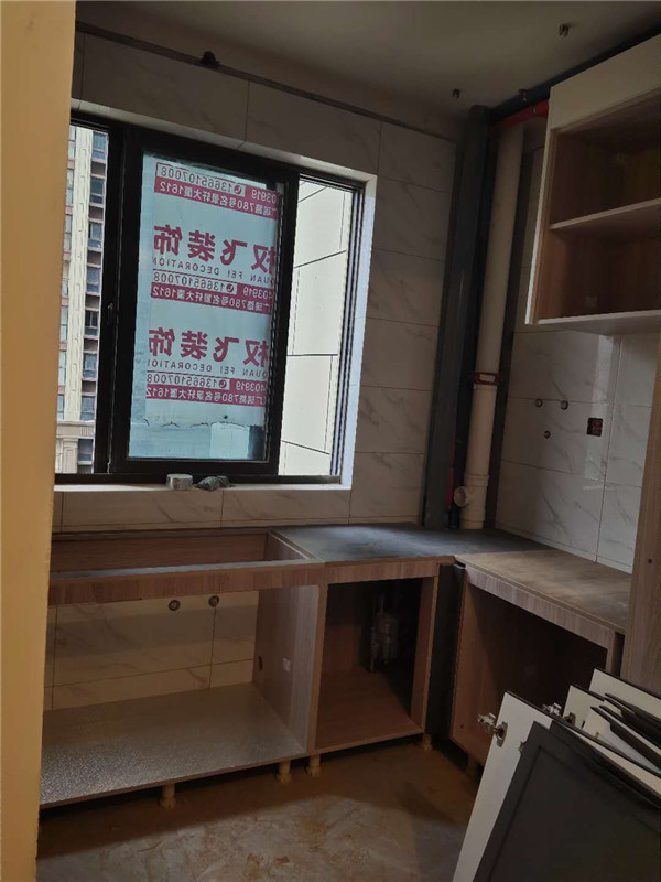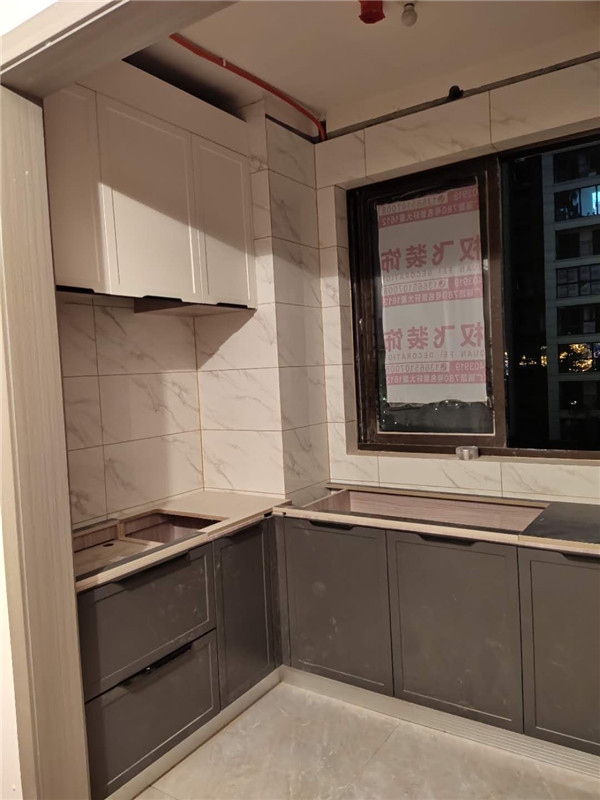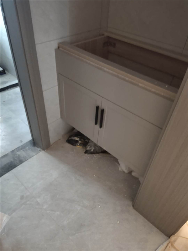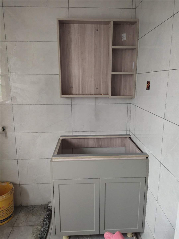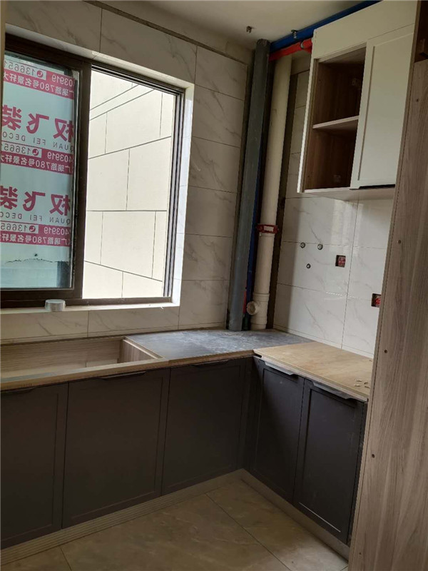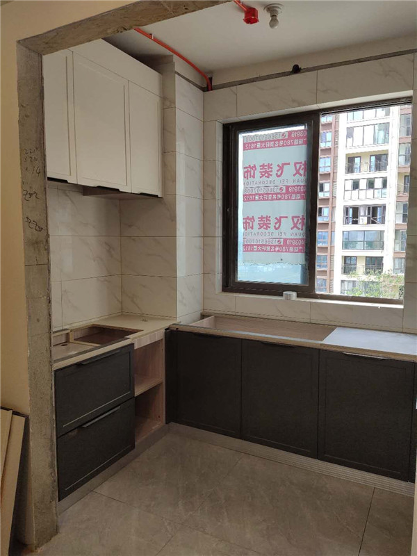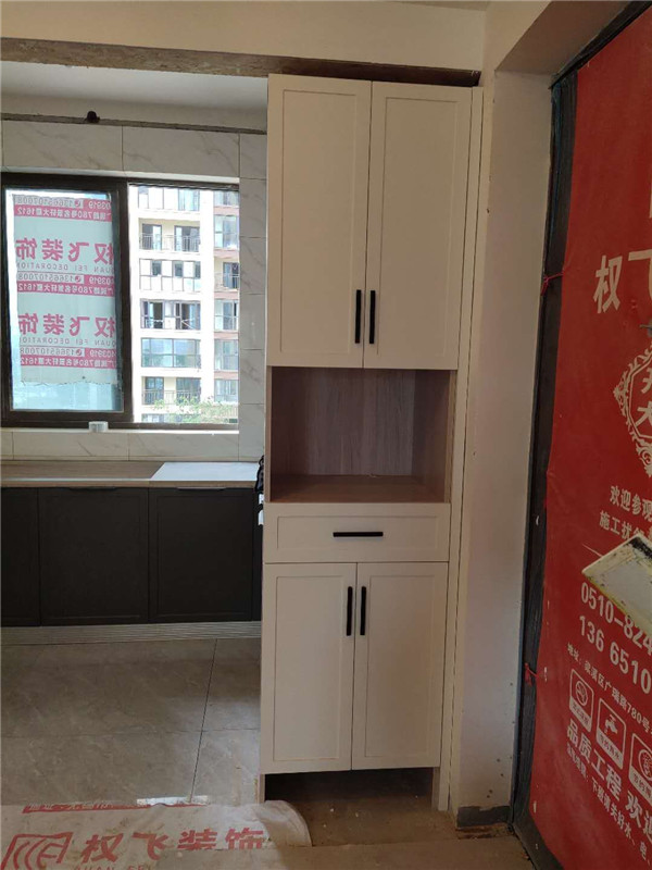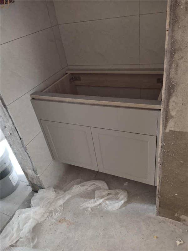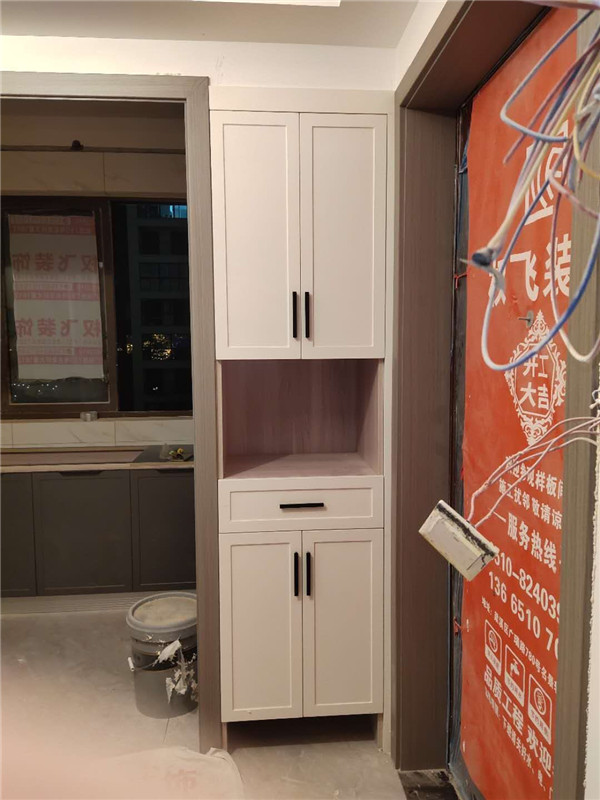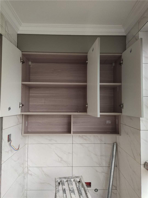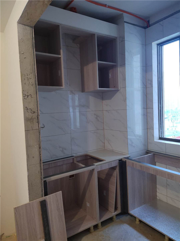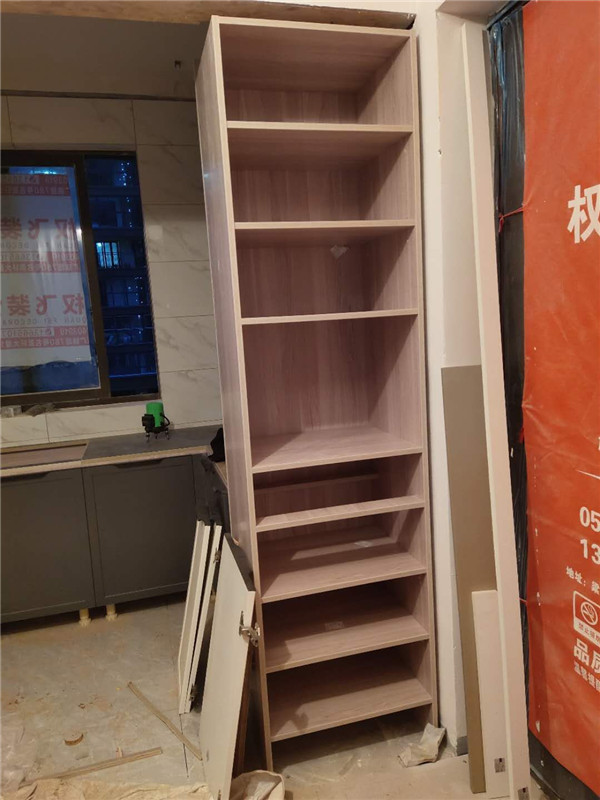 柜體基本拼裝完畢啦,業主家柜體選的同一種顏色,整體效果清爽干凈,顯得不那么雜亂。