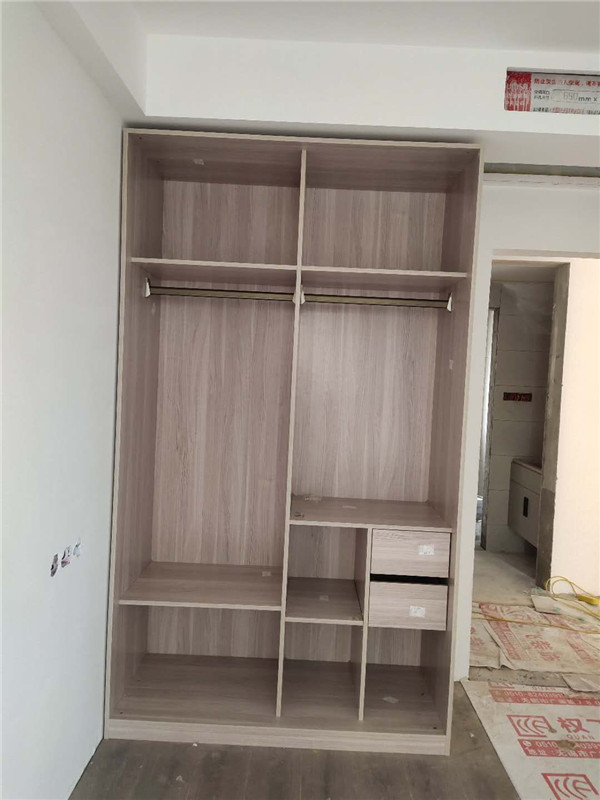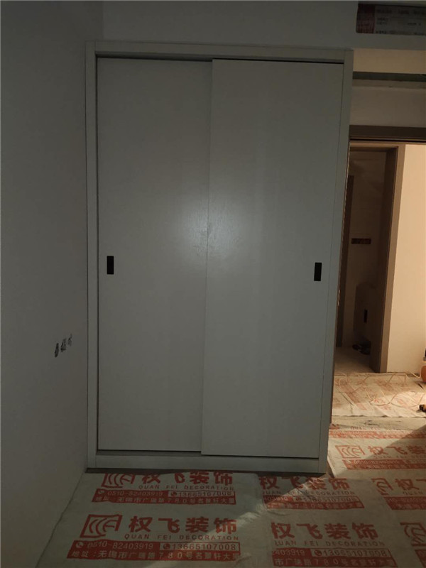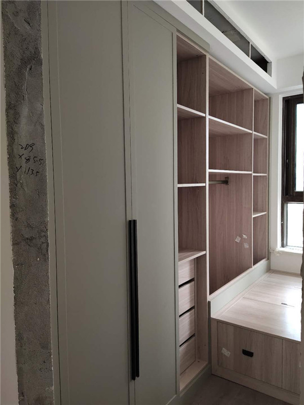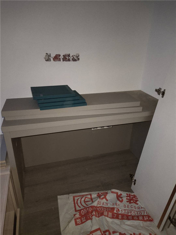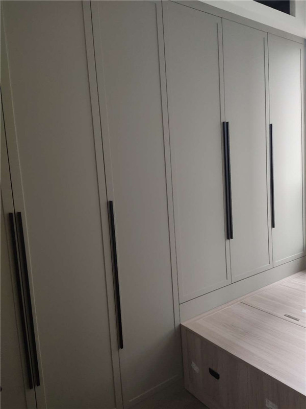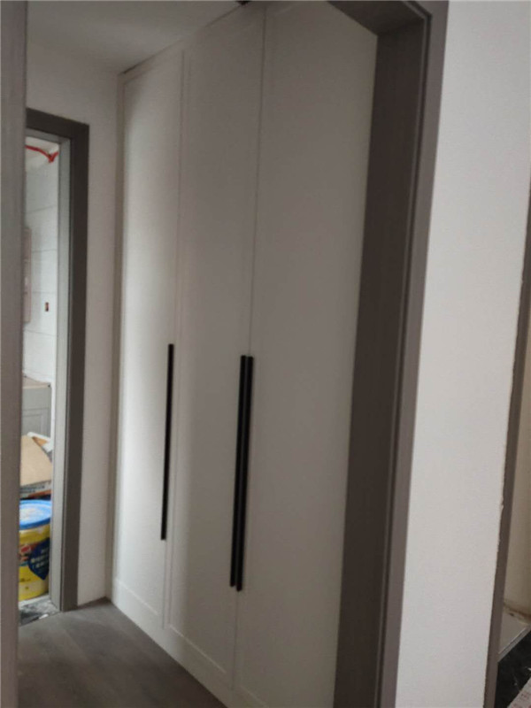 之前有點售后,現在都處理好了,業主家櫥柜鞋柜采用的模壓門,小房間采用的多層板大板移門,