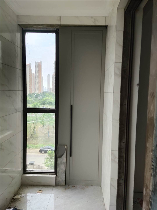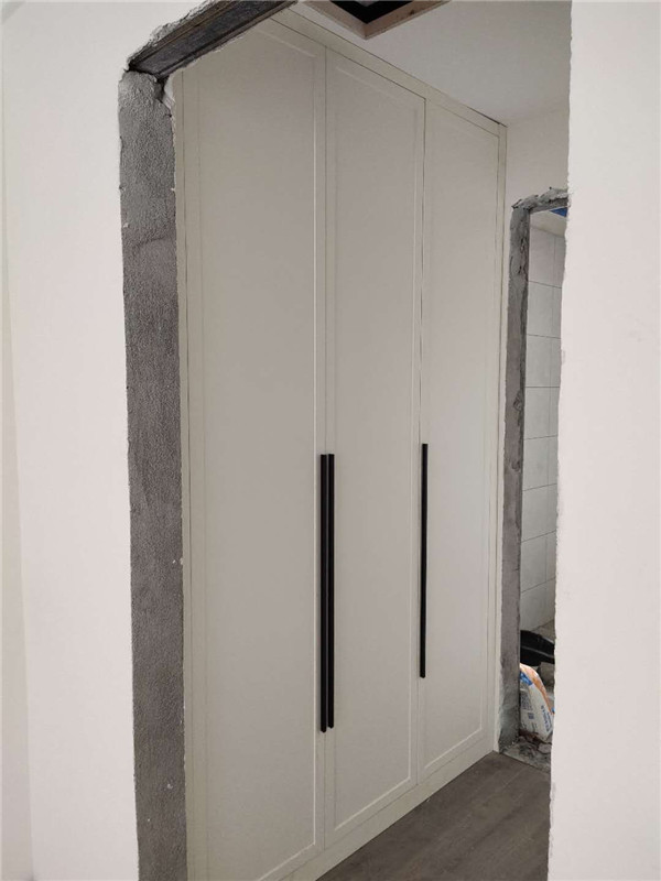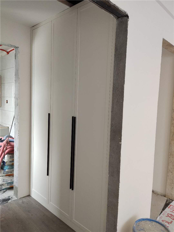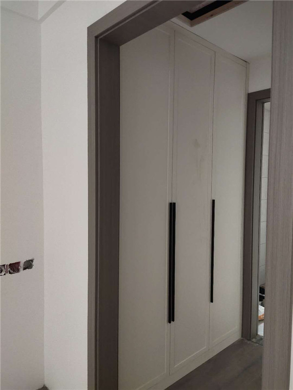 柜子安裝完畢啦,柜子一裝整個家充實多了,業主家柜門采用的模壓門,整體效果時尚大氣。
