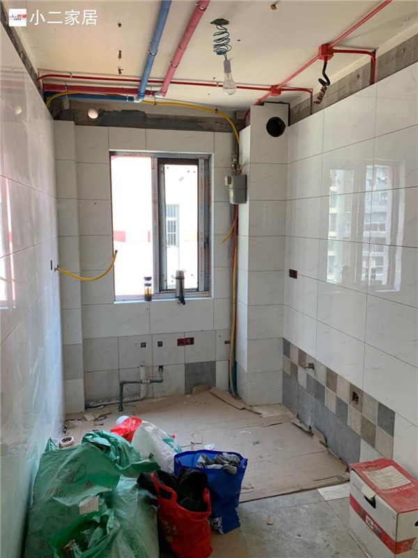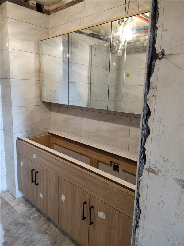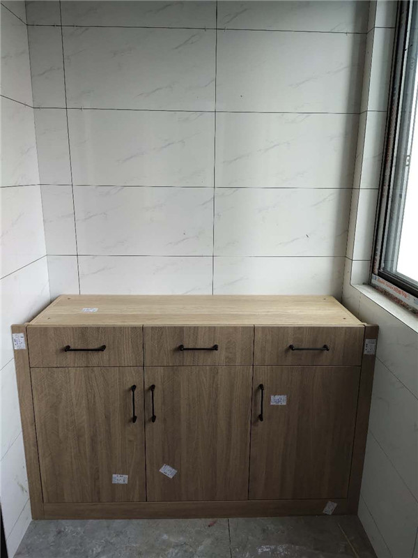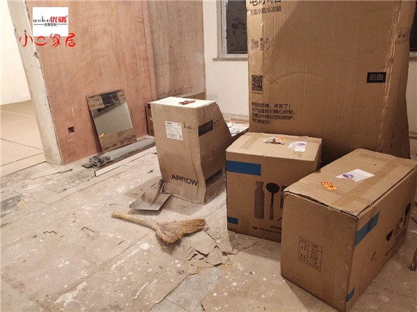 要用到的廚房水槽、灶具、浴柜臺盆放置在現場,后期臺面安裝需用到。柜子