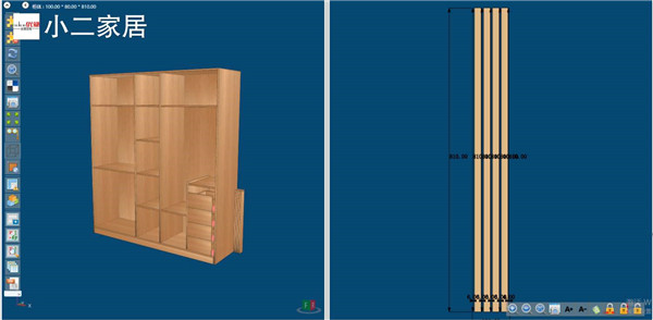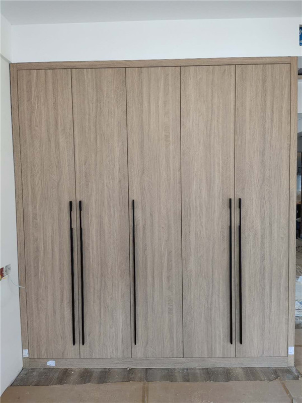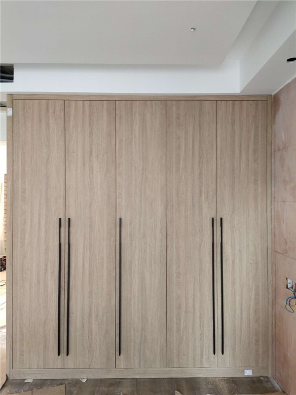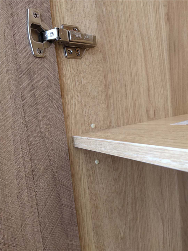 門板選用的是平安樹進口雙飾面百慕威的天使本橡。衣柜拉手選用