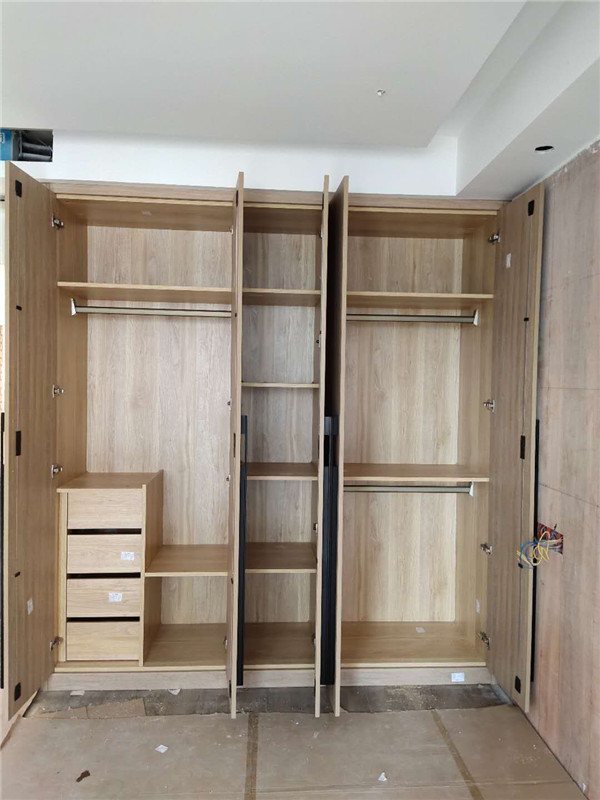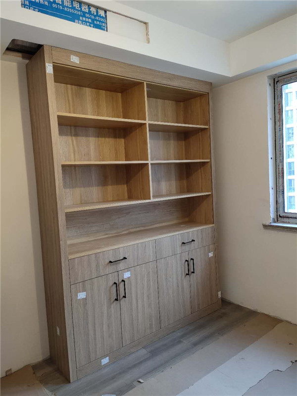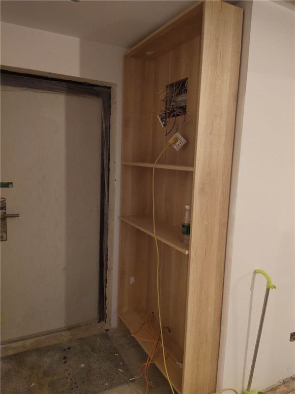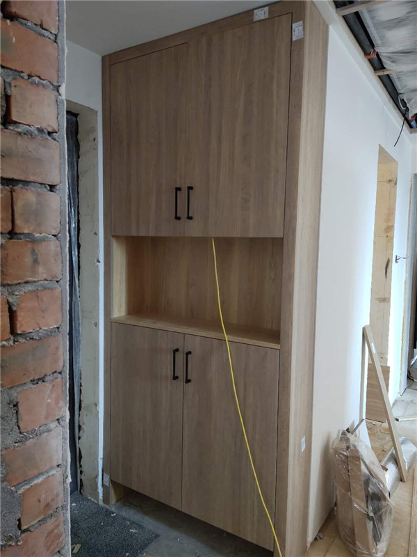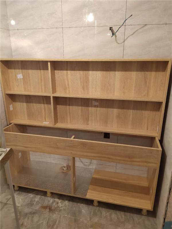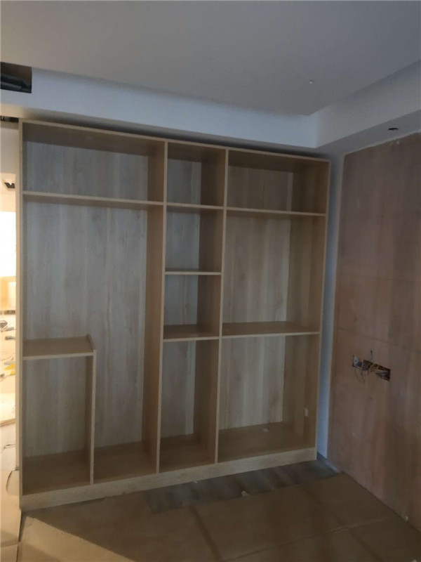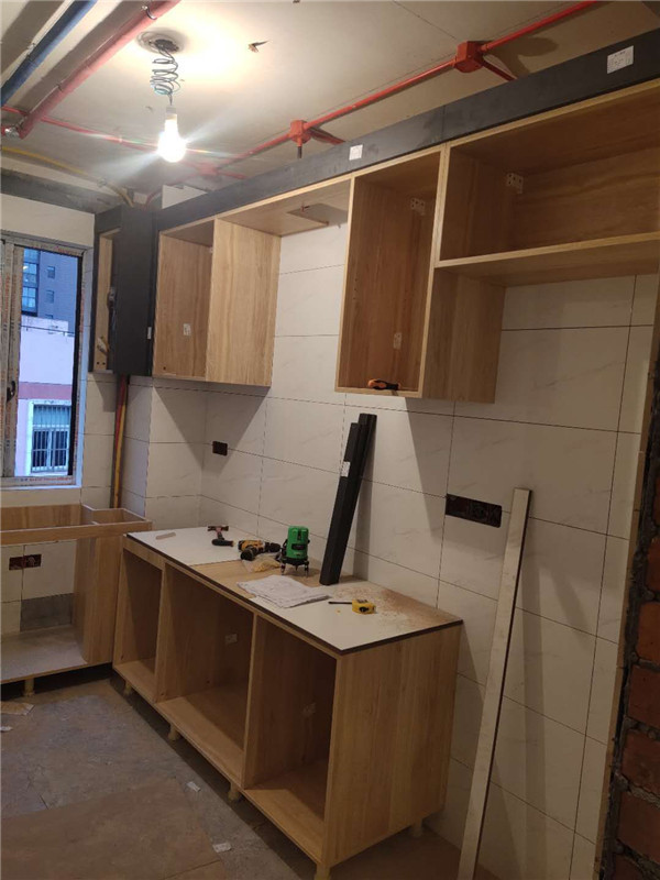 安裝師傅兩天的勞動成果,柜體基本拼裝好了,業主家采用的是原木色柜體,給人一種自然、質樸、素雅的感覺。期待柜門安裝后的效果。
