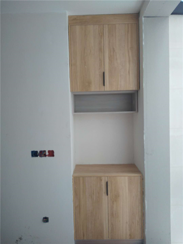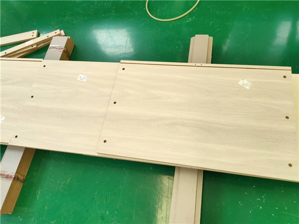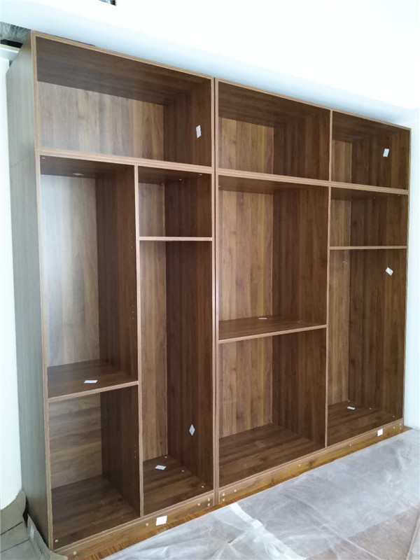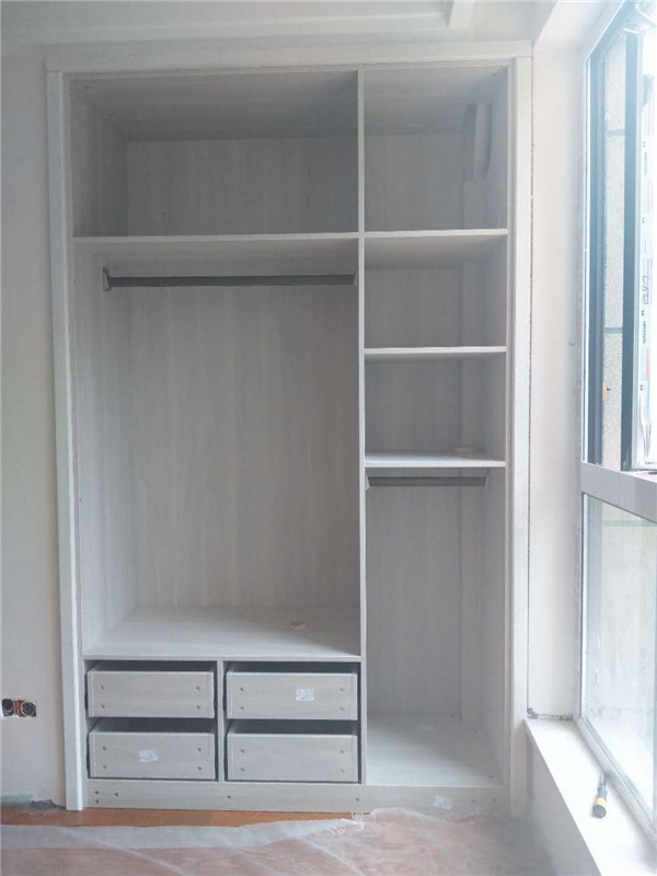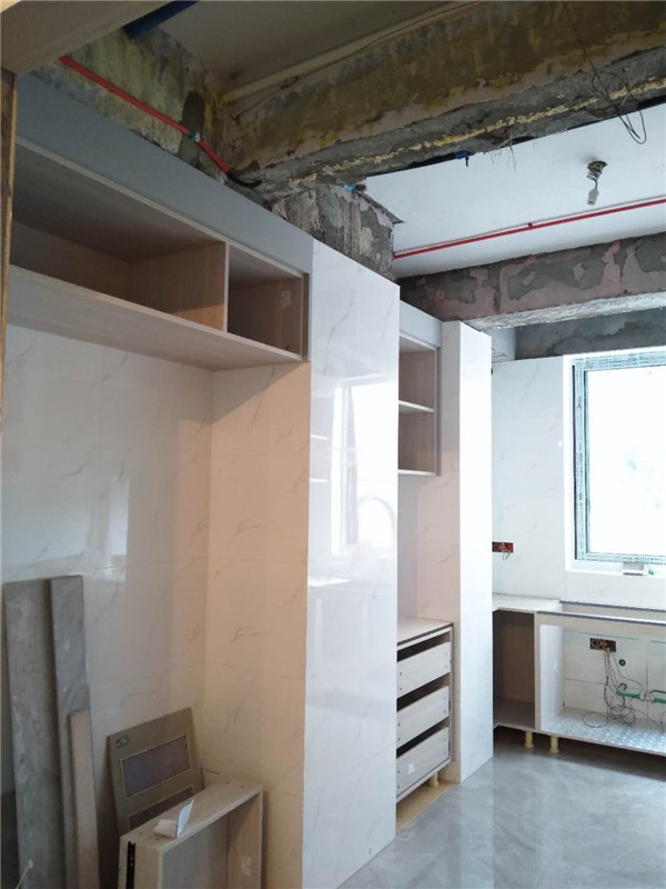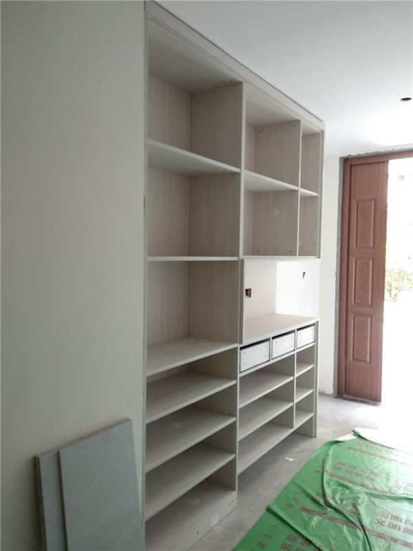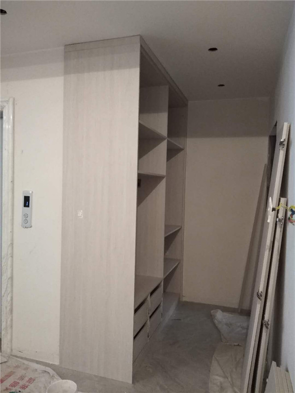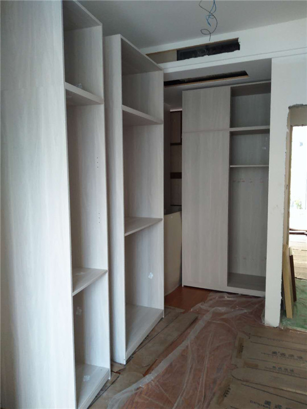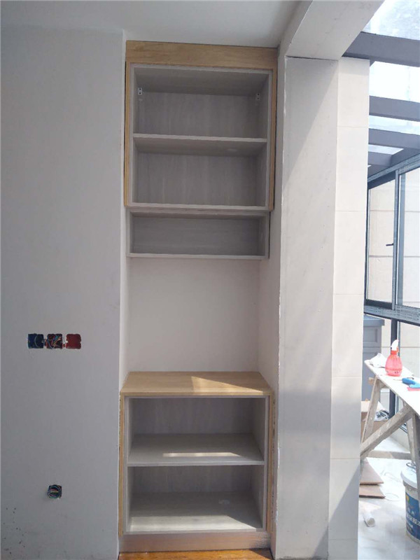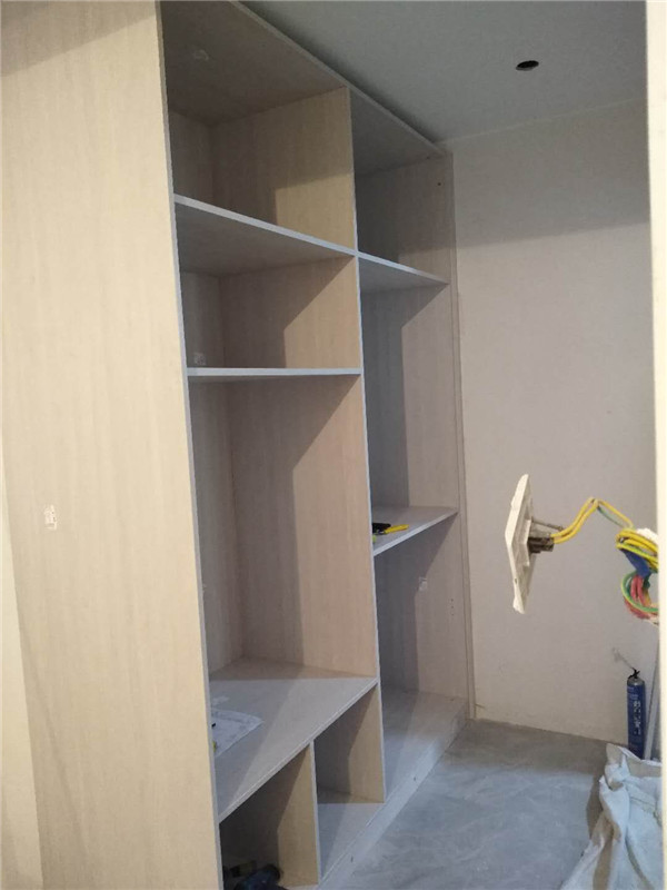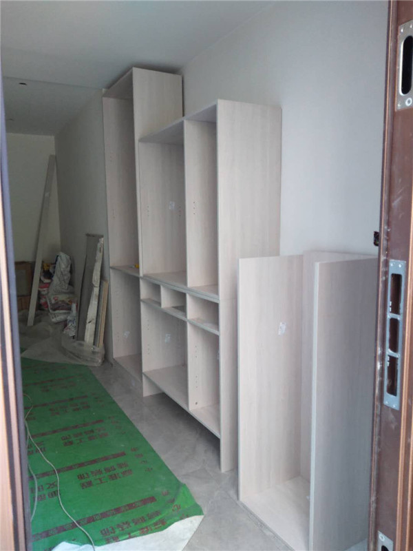 插槽背板離墻面1.7公分,防止使用時間常出現柜體發霉的現象。拆好的板師傅都整整齊齊放在墊板上,
