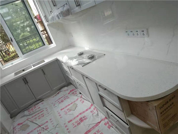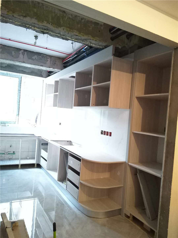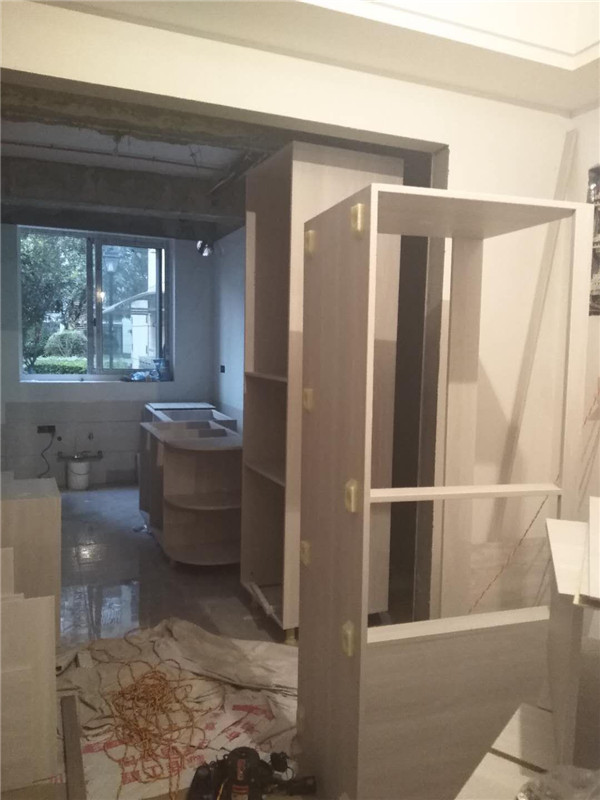 柜子安裝好后進入臺面測量環節,臺面量完后一個星期內送貨并安裝。
