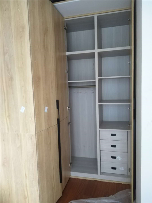 整體看上去清爽簡約。柜子內部結構明確,做了四個抽屜,掛衣服的地方也不少,后期整理很方便,