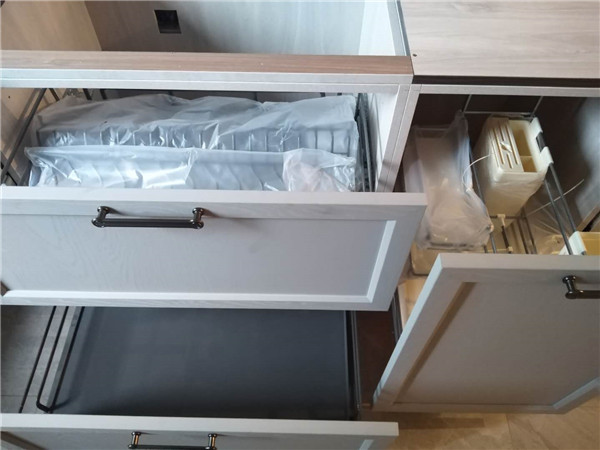 角落我們都放置了防塵塞,防止灰塵落入,廚房的拉籃三件套是諾米的瑪爵系列