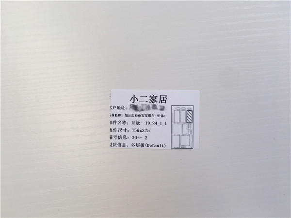 我家不管大小板都是四面封邊哦!每塊板上都貼有小標簽,方便后期安裝師傅安裝。