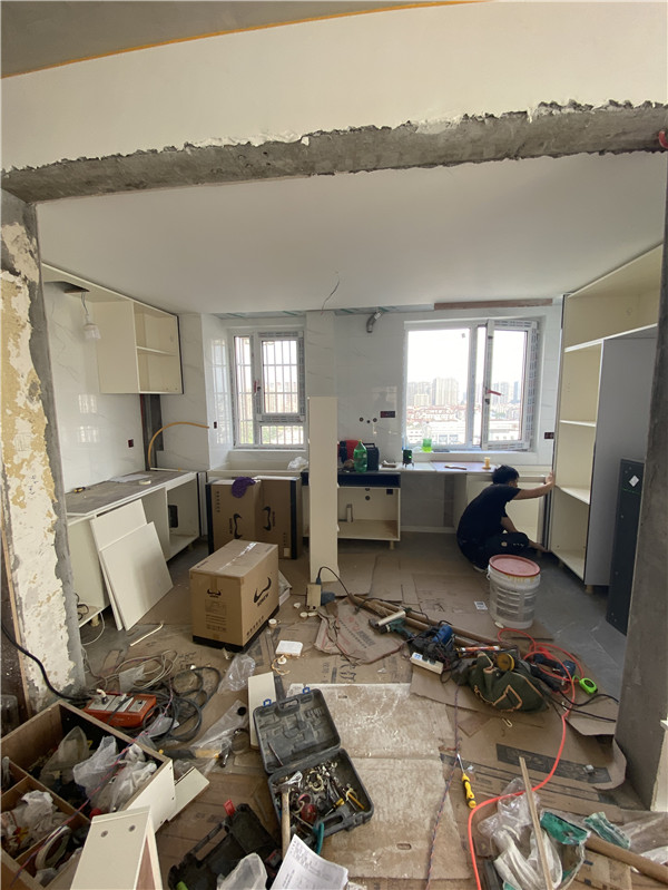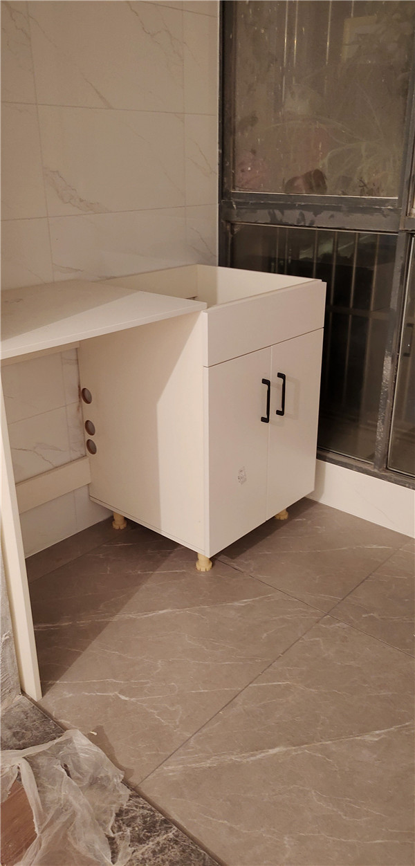 后期臺面安裝需用到。柜子安裝好后進入臺面測量環節,臺面量完后一個星期內送貨并安裝。