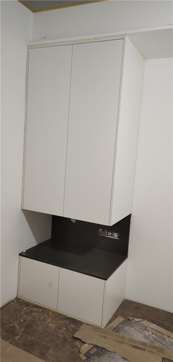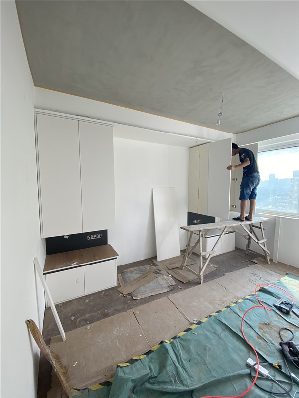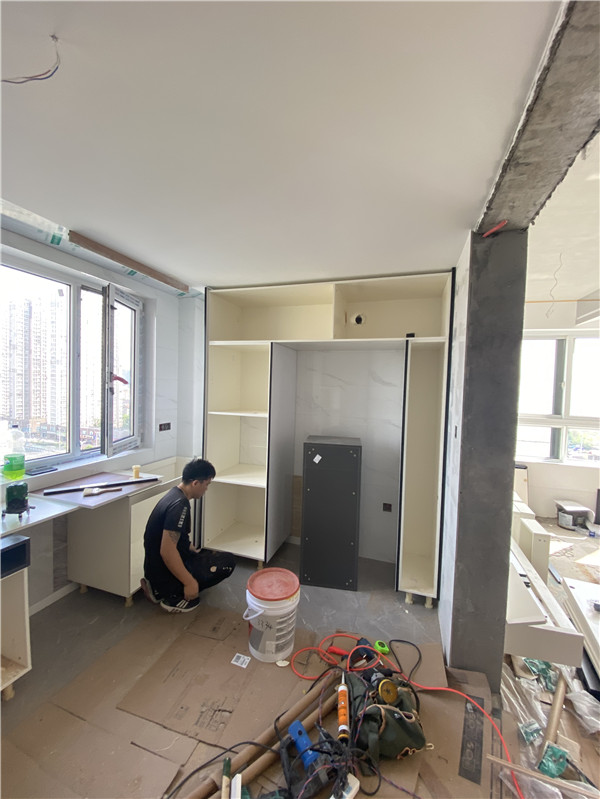 柜門師傅會用柏油清洗劑全部擦拭一遍,以保證裝到客戶家整潔美觀。