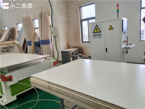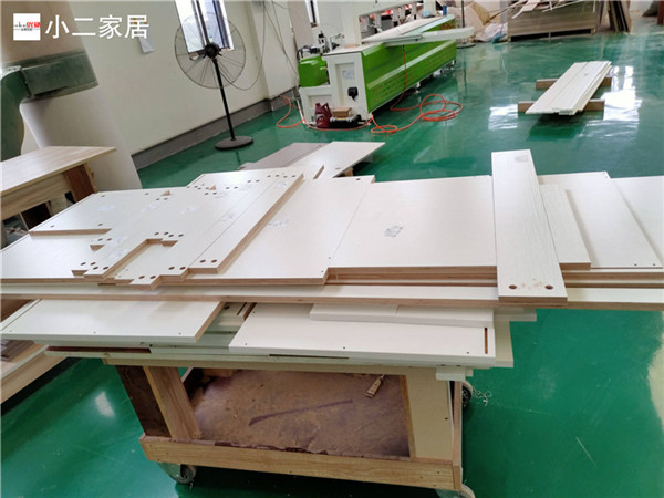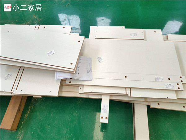 開始制作啦!專業設備裁板,沒有爆邊。板材使用平安樹實木多層板E0級制作,有高級的藍光防偽標識哦,邊口都是直的,
