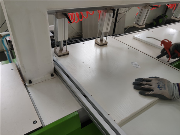 在打邊孔啦,機器打孔與面板上的大孔位置一致,沒有偏差,打好孔的板也放的整整齊齊沒有高矮不齊的現象,