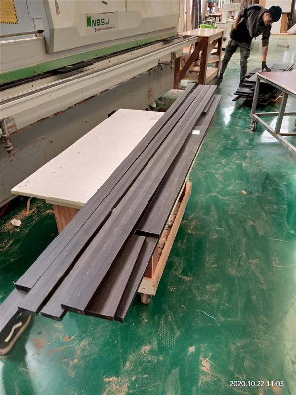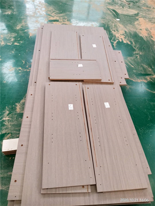 開始制作啦!專業設備裁板,板材使用平安樹實木多層板E0級制作,有高級的藍光防偽標識哦,邊口都是直的,沒有爆邊的情況,