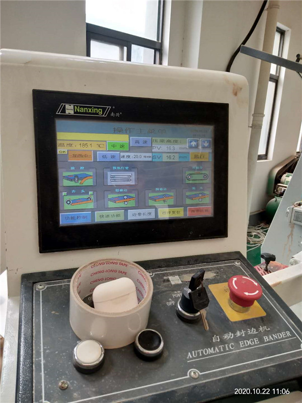 膠水采用美國波士熱熔顆粒膠,當設備溫度達到180℃以上就好開始封邊了。我家不管大小板都是四面封邊哦!