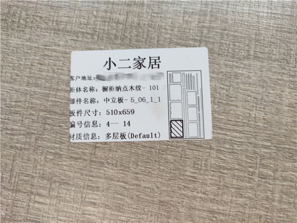 我家不管大小板都是四面封邊哦!每塊板上都貼有小標簽,方便后期安裝師傅安裝。