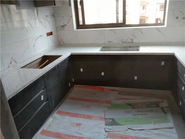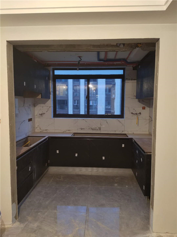 柜子安裝好后進入臺面測量環節,臺面量完后一個星期內送貨并安裝。