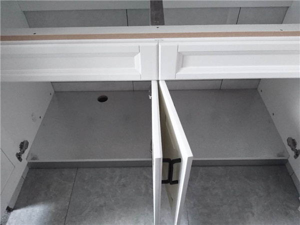 插槽背板離墻面1.7公分,防止使用時間常出現柜體發霉的現象。拆好的板師傅都整整齊齊放在墊板上,