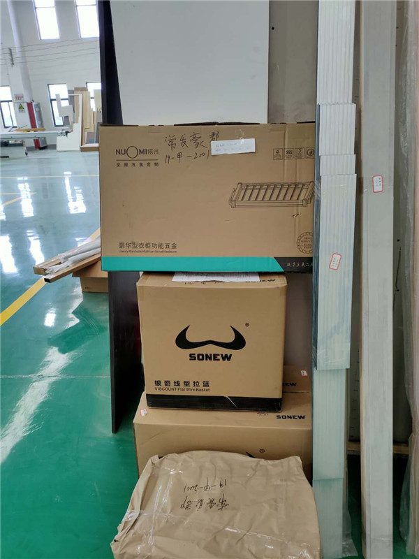 封邊完畢,部分柜體進入打包環節,我家柜子板材都是整個包起來的,以防運輸過程中劃傷或者磕碰到,