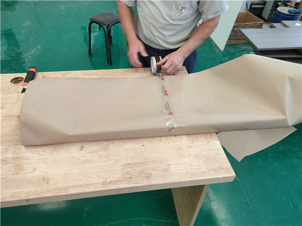 封邊完畢啦,已進入打包環節。柜門師傅會用柏油清洗劑全部擦拭一遍,以保證裝到客戶家整潔美觀。