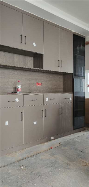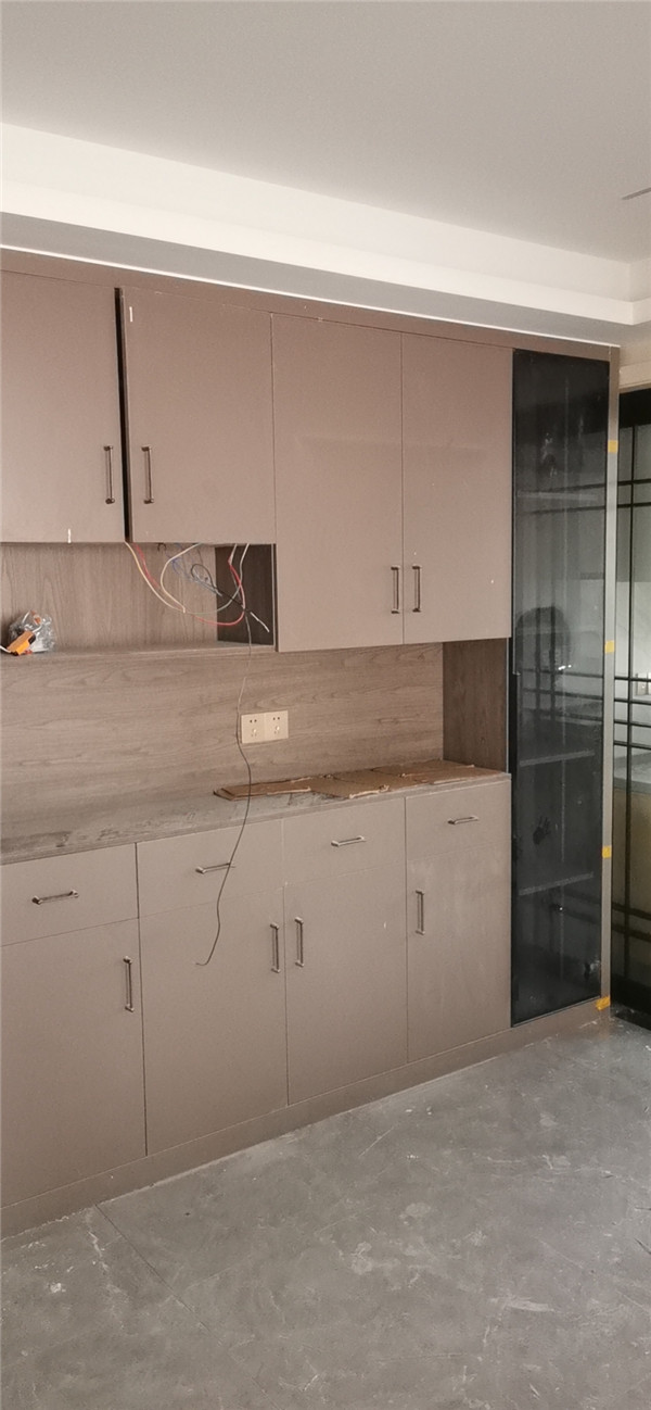 【小二跟單3128】白馬公館 晶鋼門、灰玻玻璃門+實木多層板、松木刨花板柜體櫥柜生產中