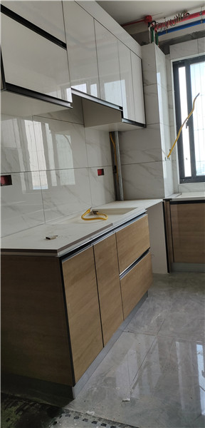 櫥柜門板選用晶鋼門,這樣就方便了后期櫥柜門板打理油漬,其他門板選用雙飾面平板門,馬上進入生產環節了。