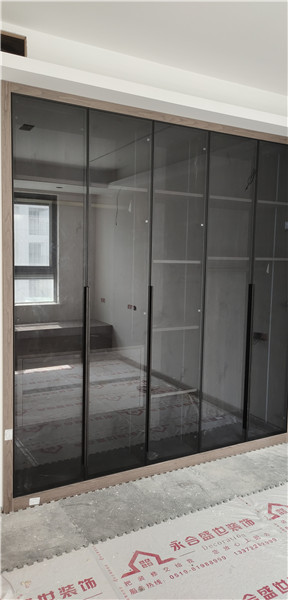 業主家柜子還是蠻多的,黑色邊框灰玻門搭配上膚感板,