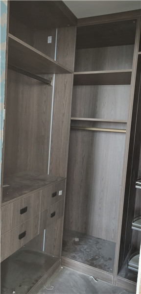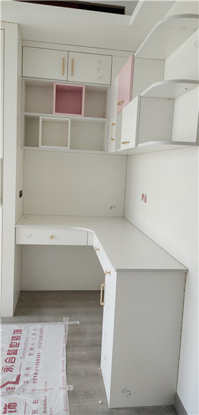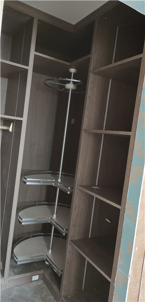 接下來看看衣柜吧,拐角地方放了一個諾米的旋轉掛衣桿,小孩房間做了一個轉角書桌,合理利用了空間。