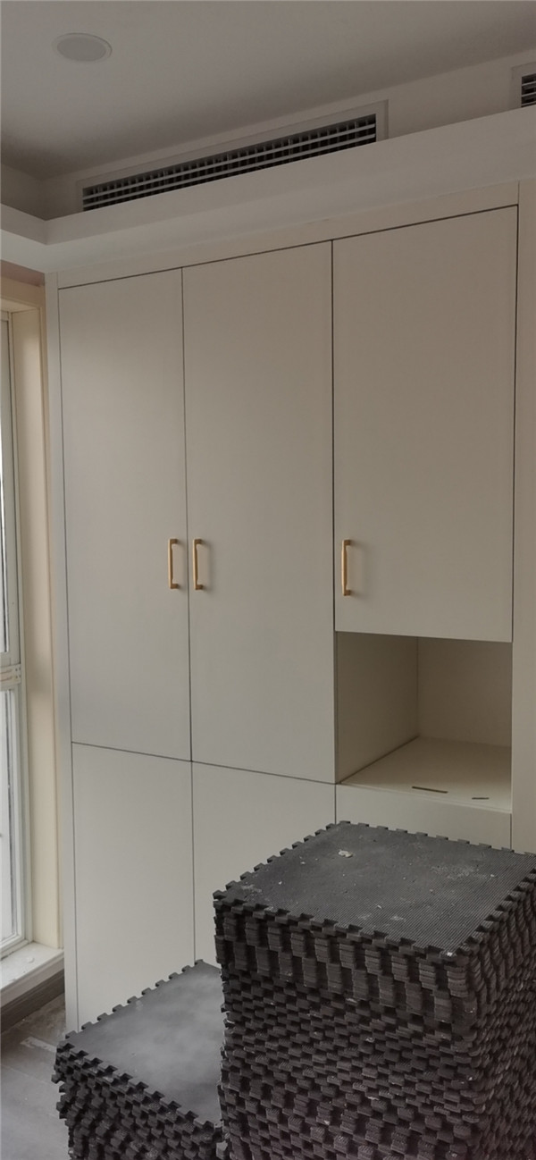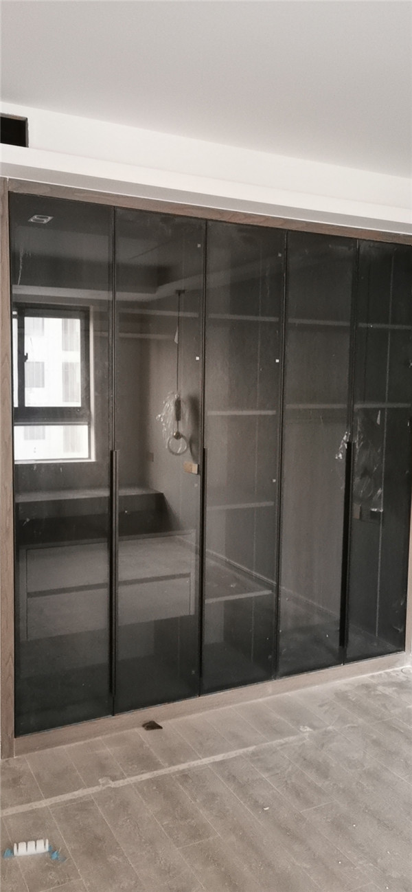 柜子已經全部安裝好啦!兒童房間采用了彩色套盒,給房間增加了一種活潑的氣息。灰玻玻璃門。呈現出一種通透的感覺。總體體現出了現代風的精髓!