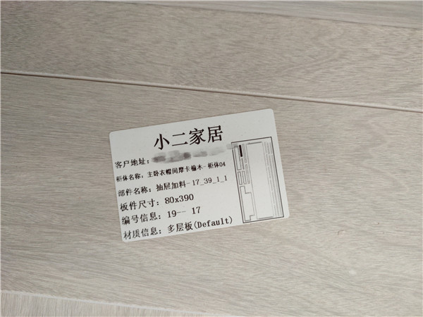 每塊板上都貼有小標簽,方便后期安裝師傅安裝,封邊條上都帶有“優端”logo的哦!方便后期售后服務。