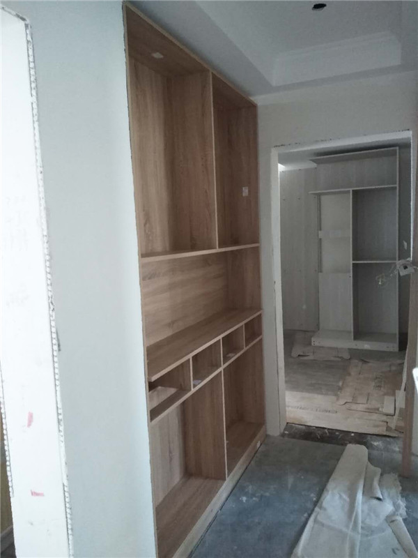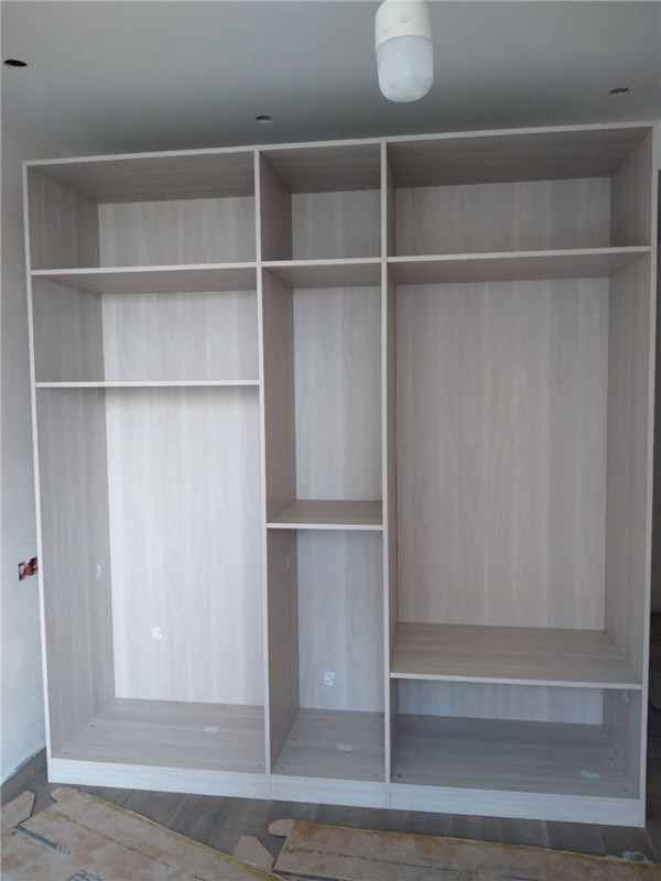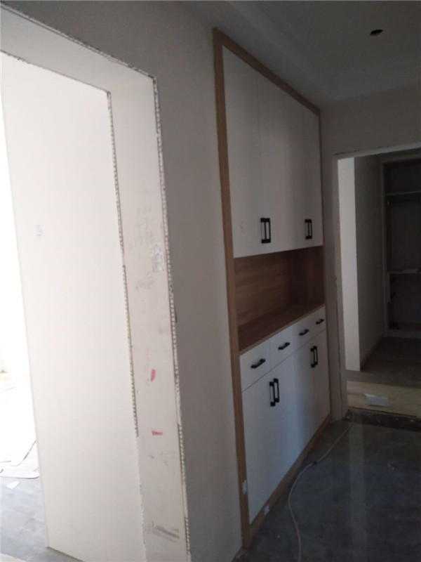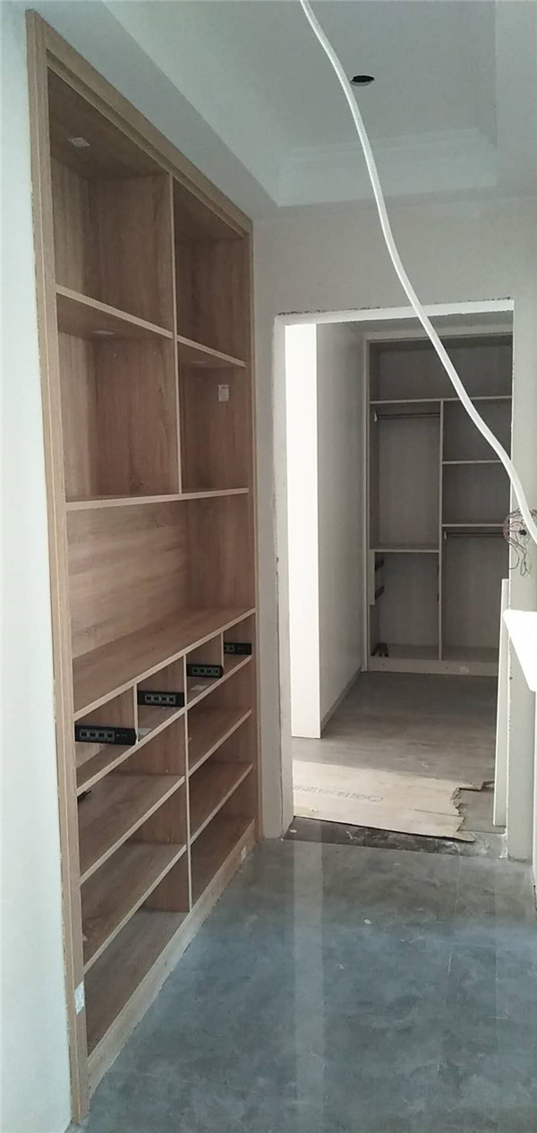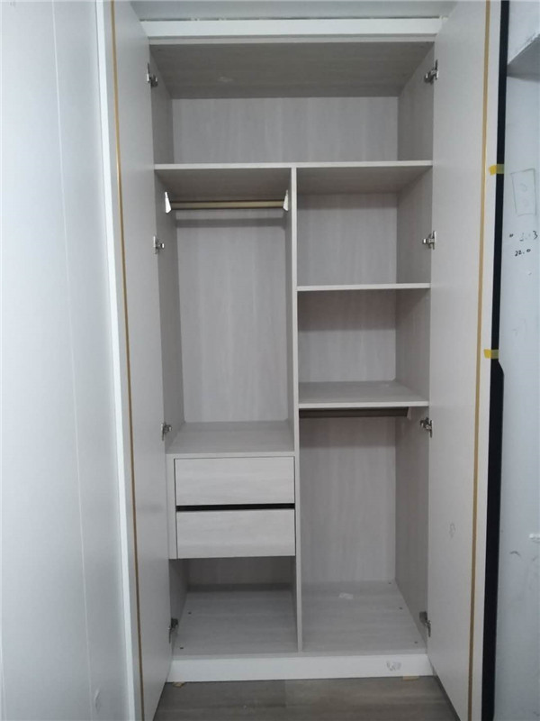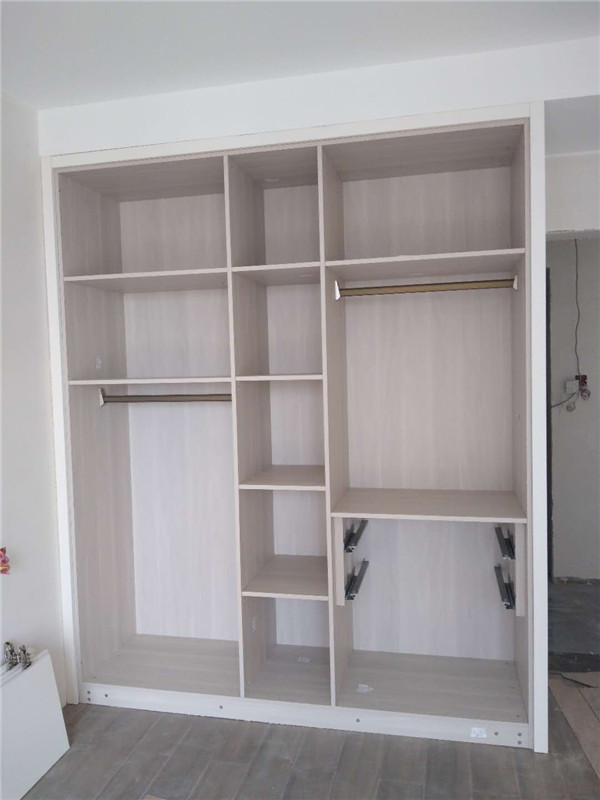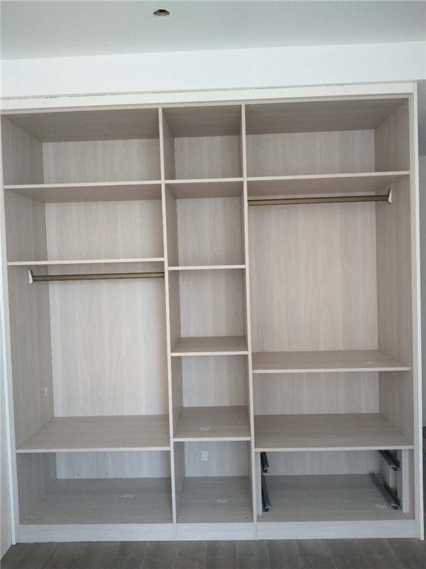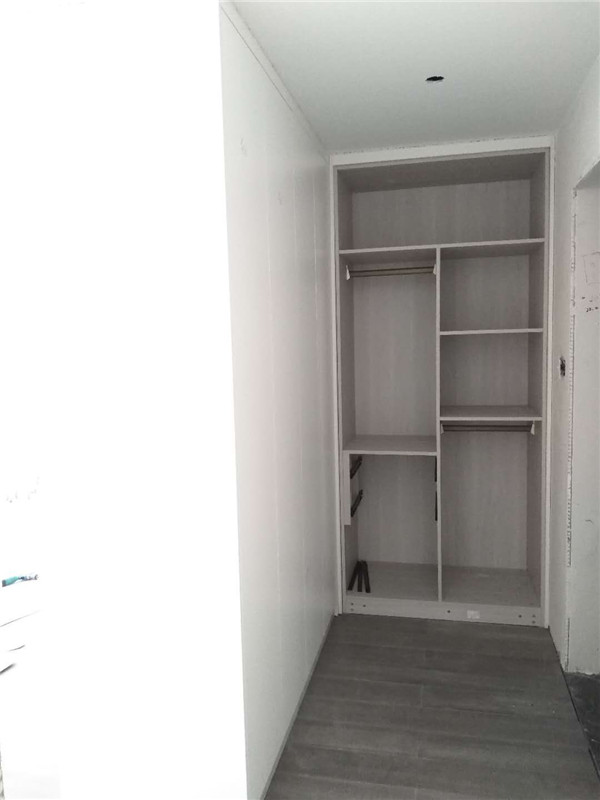 柜體安裝完畢啦,從柜子內部結構可以看出,業主還是多以掛衣服為主,結構分明,后期收納起來肯定很方便。