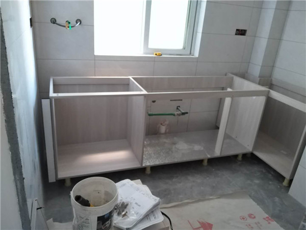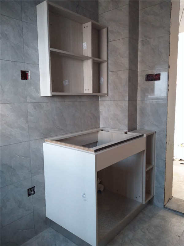 浴柜臺盆放置在現場,后期臺面安裝需用到。柜子安裝好后進入臺面測量環節,臺面量完后一個星期內送貨并安裝。