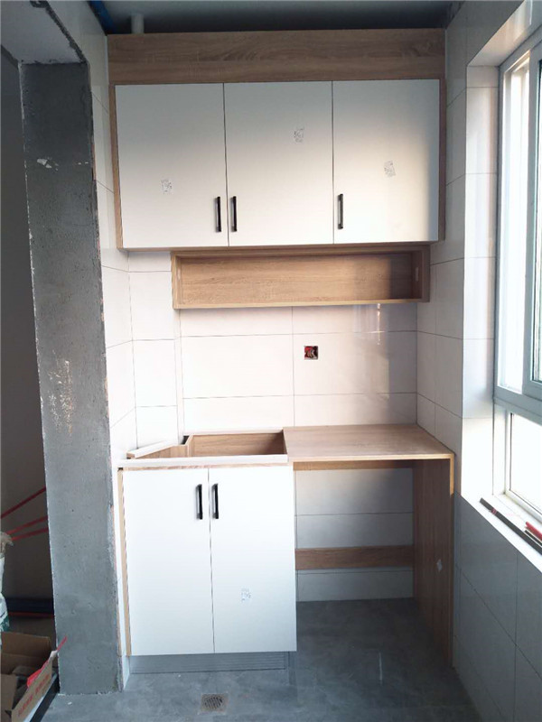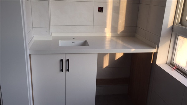 臺面安裝好了,配上白色門板,看上去干凈又清爽。