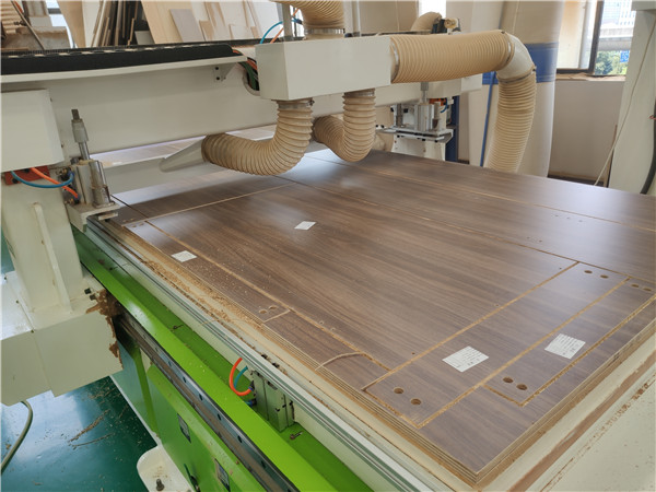 開(kāi)始制作啦!專業(yè)設(shè)備裁板,板材使用平安樹(shù)實(shí)木多層板-美藝家E0級(jí)制作,