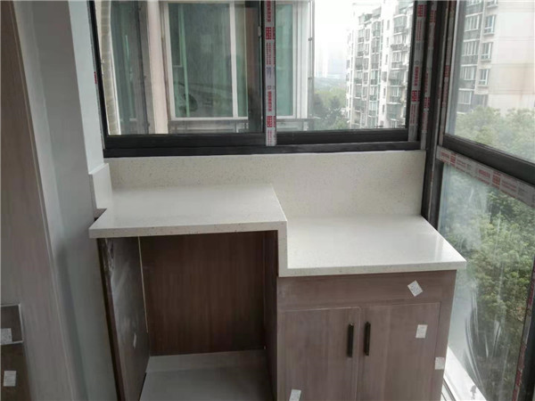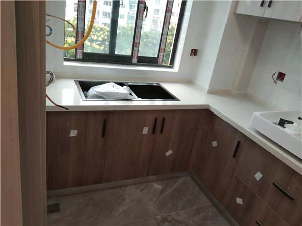 臺(tái)面安裝完畢,業(yè)主家選的單色臺(tái)面,整體看上去清爽干凈。