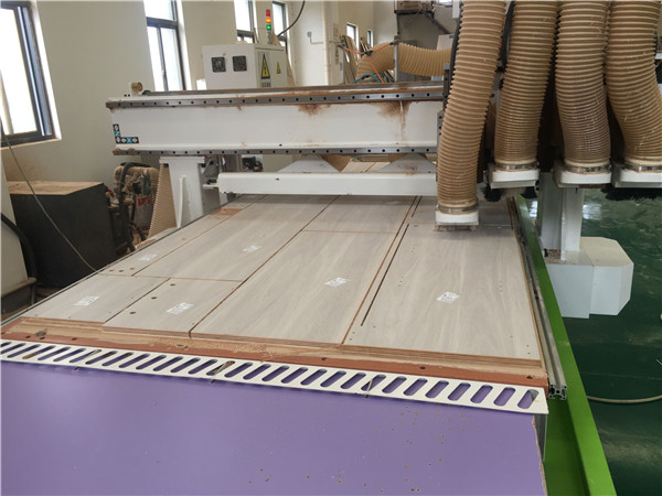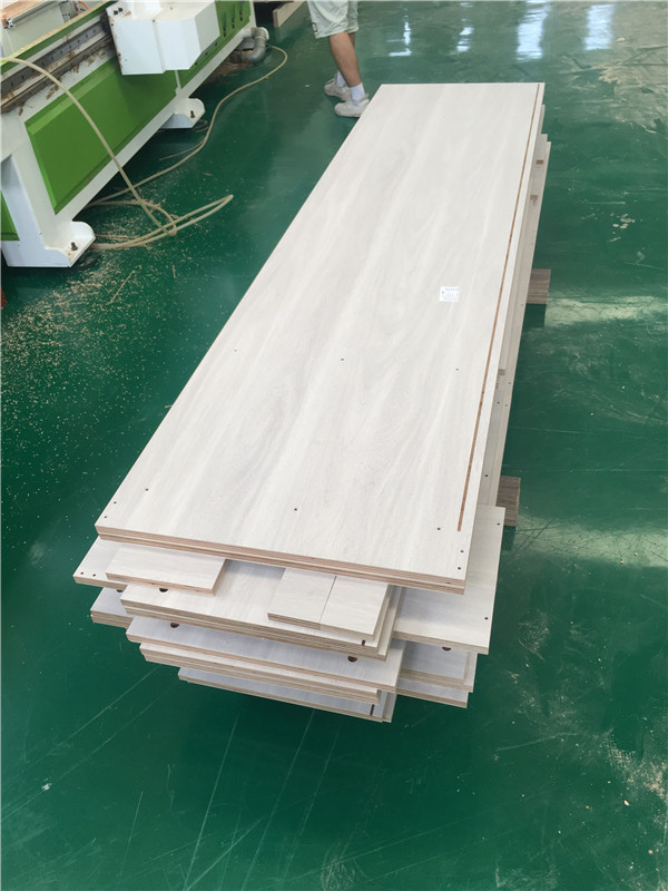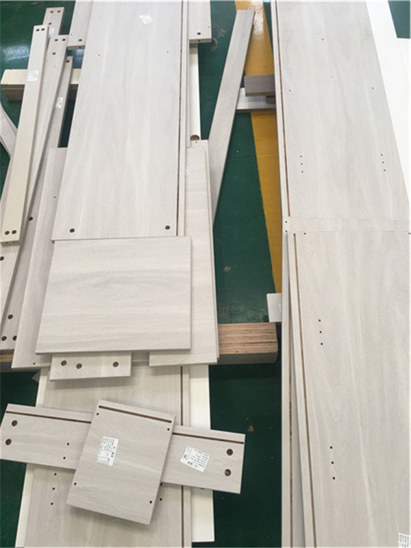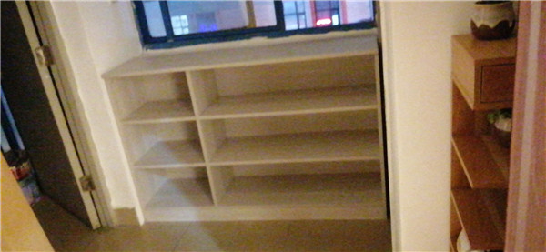 插槽背板離墻面1.7公分,防止使用時間常出現柜體發霉的現象。拆好的板師傅都整整齊齊放在墊板上,沒有高矮不齊的現象,
