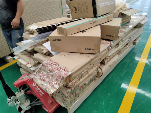 以防運輸過程中劃傷或者磕碰到,跟板材下面墊板一個原理哦!等全部打包好就可以聯系客戶送貨咯!