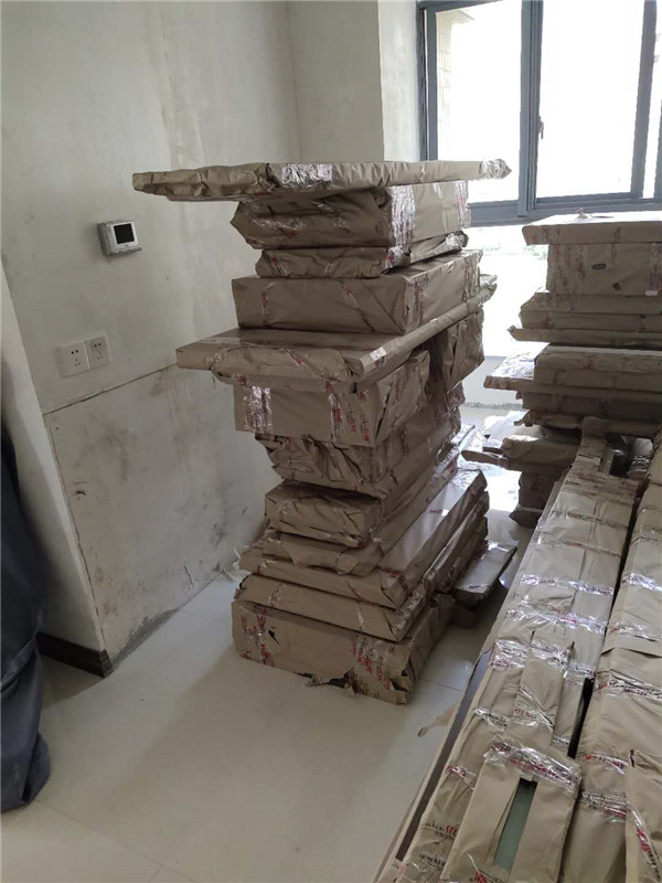 我家柜子每塊板都是整個打包起來的,以防運輸過程中劃傷或者磕碰到,跟板材下面墊板一個原理哦!