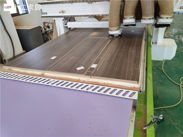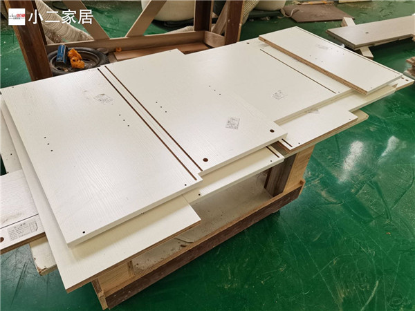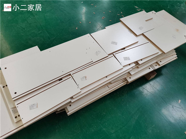 開始制作啦!專業(yè)設(shè)備裁板,板材使用平安樹實木多層板E0級,邊口都是直的,沒有爆邊的情況,這樣后面封出來的邊更圓滑,全自動機器開料尺寸更精準(zhǔn)。插槽背板離墻面1.7公分,防止使用時間常出現(xiàn)柜體發(fā)霉的現(xiàn)象。拆好的板師傅都整整齊齊放在墊板上,沒有高矮不齊的現(xiàn)象,板下面都墊了墊板的哦,第一:防止地面有東西劃傷或者磕碰到板面,第二:防潮