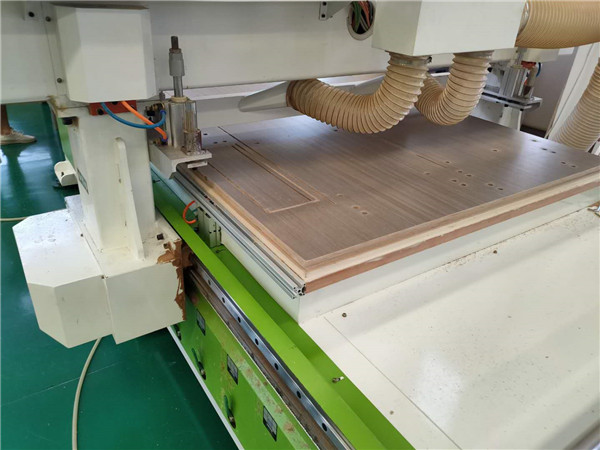 開始制作啦!專業設備裁板,板材使用平安樹實木多層板E0級制作,有高級的藍光防偽標識哦,