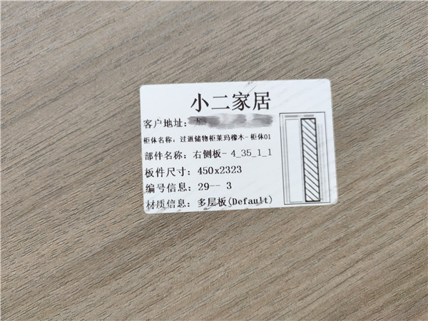我家不管大小板都是四面封邊哦!每塊板上都貼有小標簽,方便后期安裝師傅安裝。