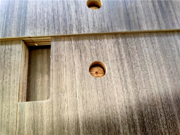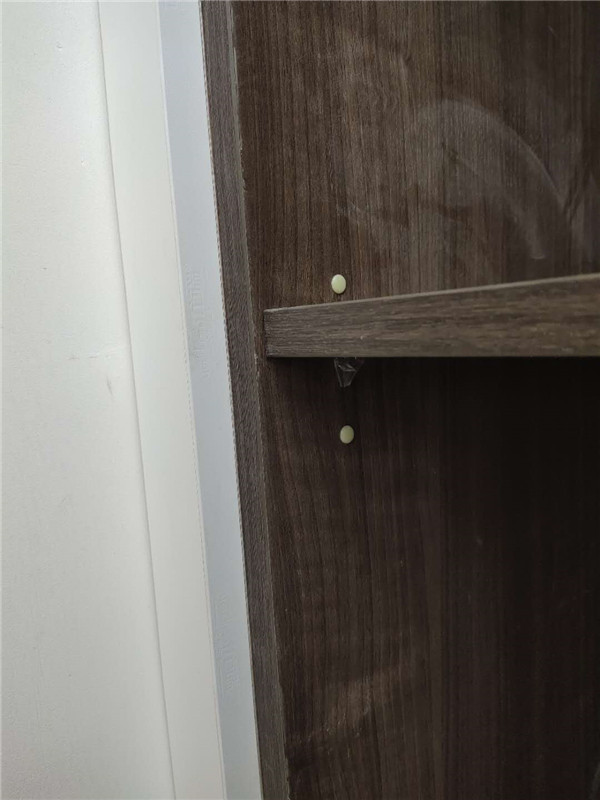 沒有爆邊的情況,這樣后面封出來(lái)的邊更圓滑,全自動(dòng)機(jī)器開料尺寸更精準(zhǔn)。插槽背板離墻面1.7公分,防止使用時(shí)間